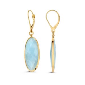Verras jezelf met deze gouden oorhaken met aquamarijn hanger. Ze zijn stijlvol, van hoge kwaliteit en perfect voor elke gelegenheid!