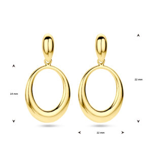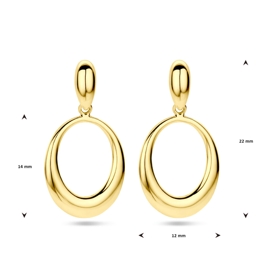 14k Geelgouden ovaalvormige oorhangers. De oorhangers hebben een totale hoogte van 22mm.