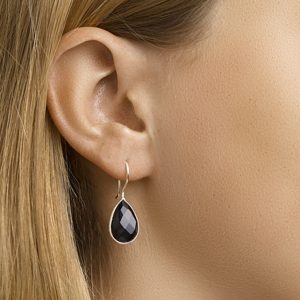 Deze Zwarte Onyx Oorhangers van Gerhodineerd Zilver zijn volledig gemaakt van 925 sterling zilver, de allerbeste kwaliteit zilver, en voorzien van een laagje rhodium met zwarte Onyx steen. Deze oorhangers bestaan uit een haakje met daaraan een druppelvormige hanger die voorzien is van een facet-geslepen zwarte Onyx steen. De oorhangers zijn zelfs voorzien van een laagje rhodium, waardoor de glans extra lang behouden blijft en u dus extra lang van dit mooie sieraad kunt blijven genieten. Deze Zwarte Onyx Oorhangers van Gerhodineerd Zilver hebben een breedte van 11,5mm met een hoogte van 30mm en zijn speciaal voor dames.