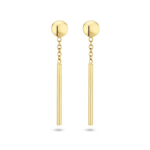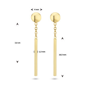 14k Geelgouden oorhangers uitgevoerd met een balkje van 16.5×1.3mm. De oorhangers hebben een totale hoogte van 2.6cm.