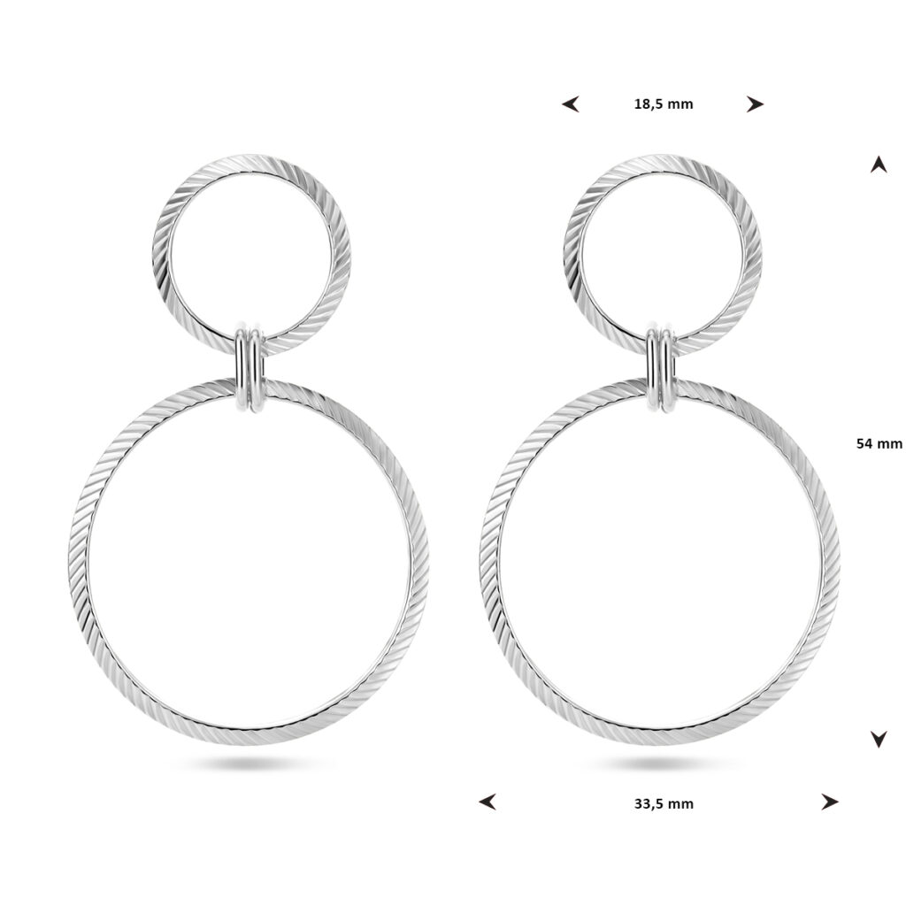 Gerhodineerd 925 zilveren oorhangers uitgevoerd met cirkels. De oorhangers hebben een totale hoogte van 54mm.