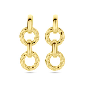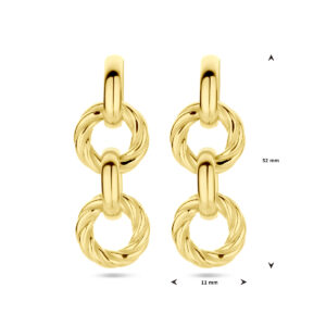Geelgoud op 925 zilveren oorhangers uitgevoerd met gedraaid cirkels. De oorhangers hebben een totale hoogte van 32mm.