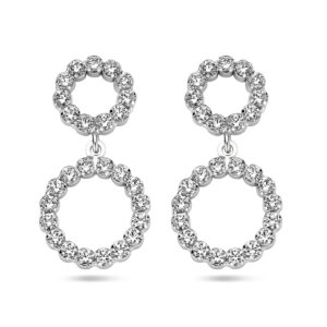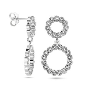 Gerhodineerd 925 zilveren oorhangers uitgevoerd met swarovski stenen. De oorhangers hebben een totale hoogte van 27mm.