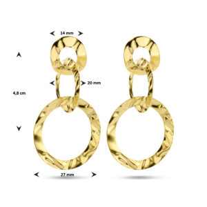 Geelgoud op 925 zilveren ronde oorhangers. De oorhangers hebben een totale hoogte van 4.8cm en een breedte van 27mm.