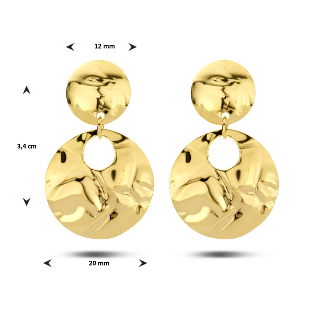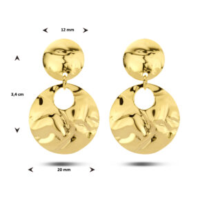 Geelgoud op 925 zilveren ronde oorhangers. De oorhangers hebben een totale hoogte van 3.4cm en een breedte van 20mm.