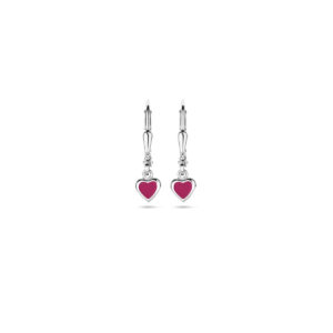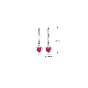 Oorhangers Hart Donkerroze Emaille Brisur Haak 19 Mm Zilver Gerhodineerd