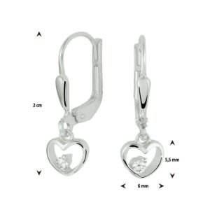 Gerhodineerd zilveren oorhangers uitgevoerd met een open hartje van 5.5x6mm en een heldere zirkonia. Tip: Leuk om kado te geven! Zie je ze al stralen? Info: Gerhodineerd zilver is door de rhodiumlaag beter bestand tegen verkleuren en krassen.