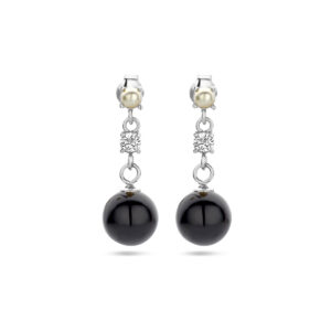 oorhangers onyx, zirkonia en synth. parel