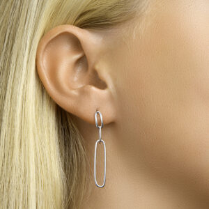 Deze schakel oorhangers met grote schakel zijn gemaakt van 925 sterling zilver, de allerbeste kwaliteit zilver, met een fijntjes gepolijst oppervlak dat mooi glanst en een laagje rhodium waardoor die glans extra lang behouden blijft. Deze oorhangers bestaan uit twee kleinere schakels die mooi op elkaar aansluiten, met onderaan een grotere schakel die goed op valt. De bovenste schakel is aan de achterzijde voorzien van een slanke steker die u gemakkelijk door uw oor steekt, met een handige sluiting. Deze oorhangers zijn speciaal ontworpen voor dames en hebben een afmeting van 6,5x38cm.