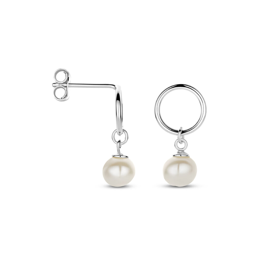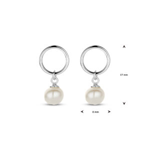 Gerhodineerd 925 zilveren oorhangers uitgevoerd met een zoetwaterparel. De oorhangers hebben een totale hoogte van 17mm.