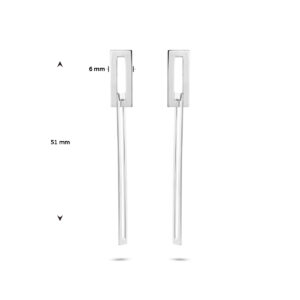 Gerhodineerd 925 zilveren oorhangers met rechthoeken en een totale hoogte van 51mm.
