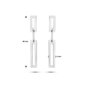 Gerhodineerd 925 zilveren oorhangers met rechthoeken en een totale hoogte van 48mm.