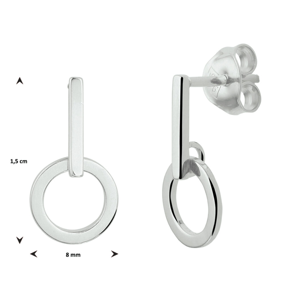 Deze oorhangers zijn gemaakt van 925 sterling zilver, de allerbeste kwaliteit zilver, met een fijntjes gepolijst oppervlak dat mooi glanst en een laagje rhodium waardoor de glans extra lang behouden blijft. Deze oorhangers bestaan uit een slank staafje, met aan het onderste uiteinde een opengewerkt rond plaatje. Het bovenste uiteinde is voorzien van een slanke steker die u gemakkelijk door uw oor steekt en een handige sluiting. Deze ronde oorhangers hebben een hoogte van 15mm en de rondjes hebben een diameter van 8mm.