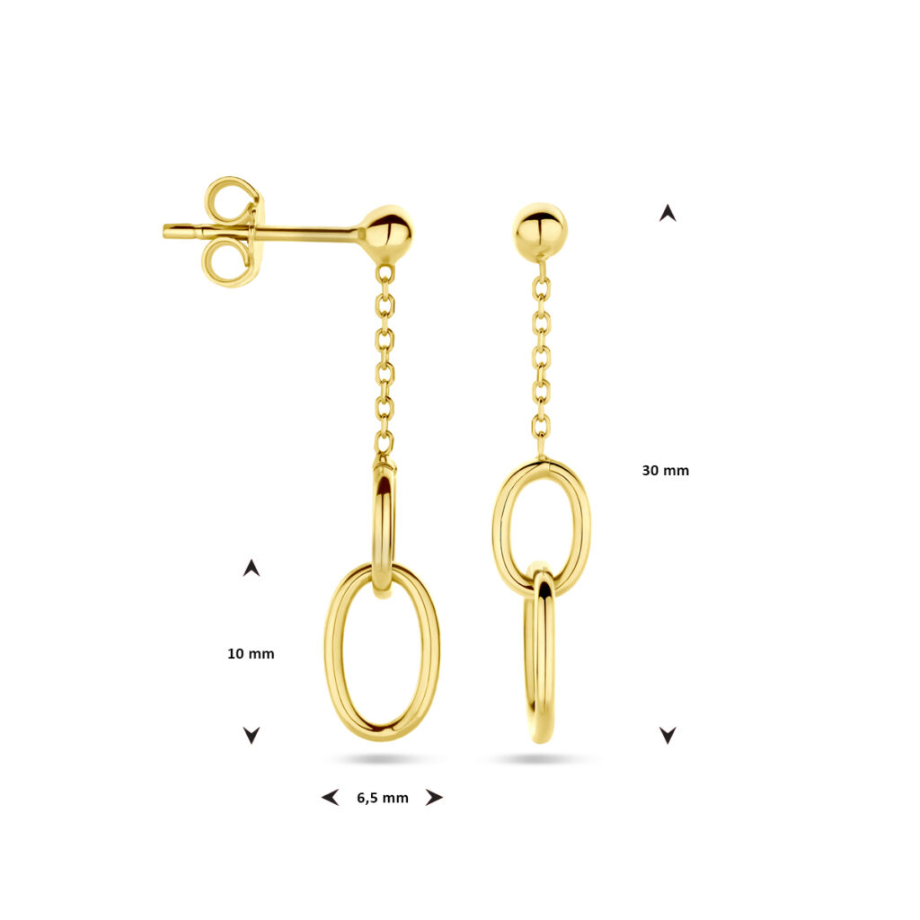 14k Geelgouden oorhangers met een totale hoogte van 30mm.