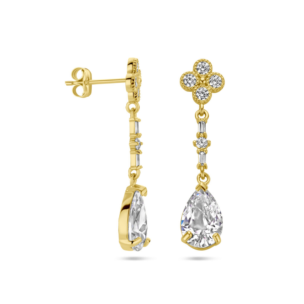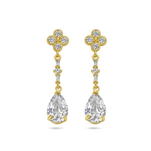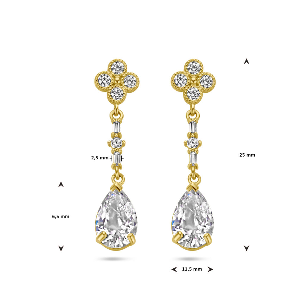 14k Geelgouden oorhangers uitgevoerd met zirkonia. De oorhangers hebben een totale hoogte van 25mm.
