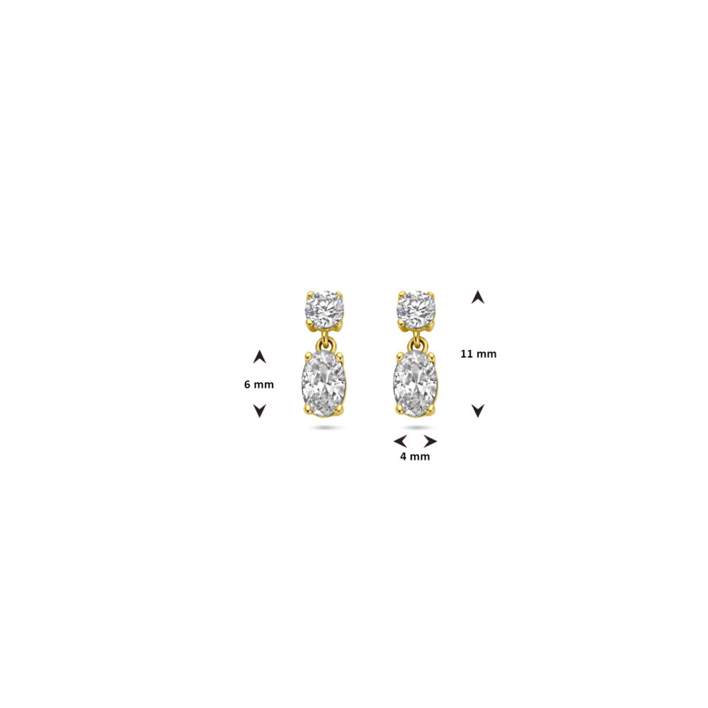 14k Geelgouden oorhangers uitgevoerd met zirkonia. De oorhangers hebben een totale hoogte van 11mm.