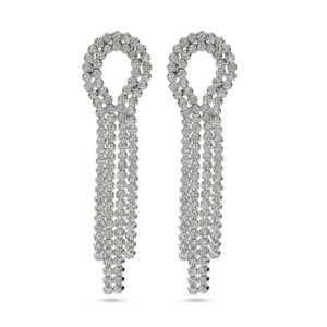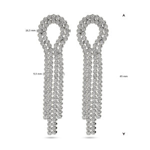 Deze flonkerende Zilveren Statement Oorhangers met Zirkonia’s zijn vervaardigd uit 925 Sterling zilver, dat is voorzien van een Rhodium coating. Deze oorbellen hebben een hoogte van 65 mm, waarbij het dubbele lus-gedeelte op de oorlel een breedte van 16,5 mm heeft, onder het dubbele lus-gedeelte een breedte van 9,5 mm en een metaalgewicht heeft van circa 8,14 gram. De oorhangers zijn voorzien van in rijzetting geplaatste, briljant geslepen, transparante Zirkonia steentjes. Deze oorstekers worden gesloten met een zilveren vlindersluiting.