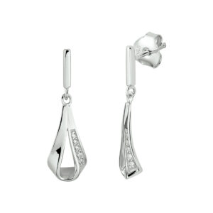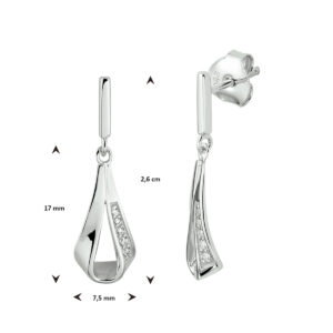 Gerhodineerd 925 zilveren oorhangers uitgevoerd met een schitterende zirkonia rij. De oorhangers hebben een totale hoogte van 2.6cm en een breedte van 7.5mm.