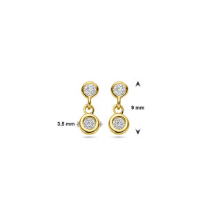 14k Geelgouden oorhangers uitgevoerd met zirkonia. De oorhangers hebben een afmeting van 9×3.5mm.