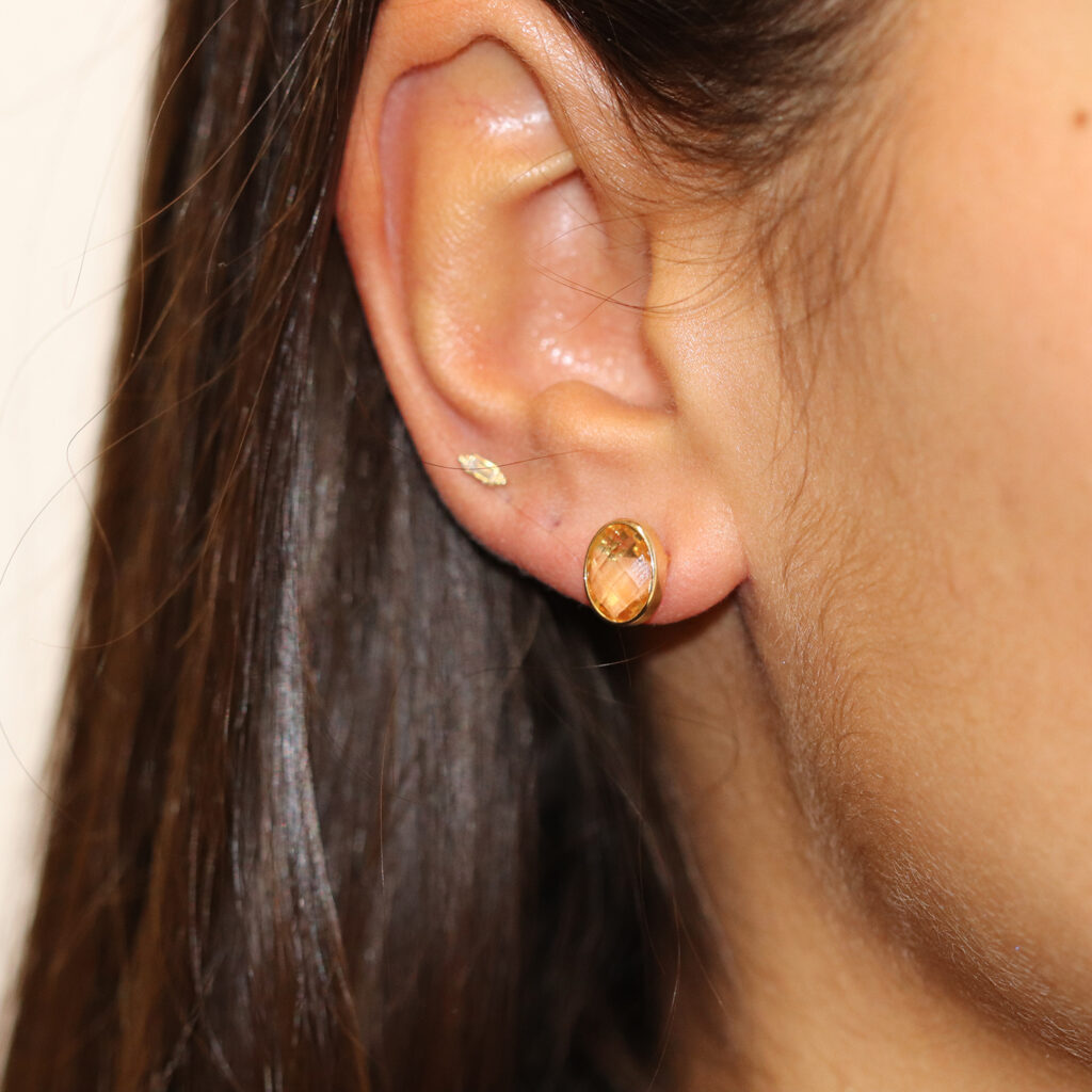 Tijdloze 14 karaat geelgouden oorstekers met citrien van het merk Glow. De oorbellen hebben een minimalistische uitstraling en passen perfect bij iedere oufit. Prachtig om te combineren met andere sieraden van Glow voor een complete look.