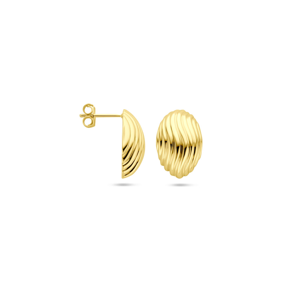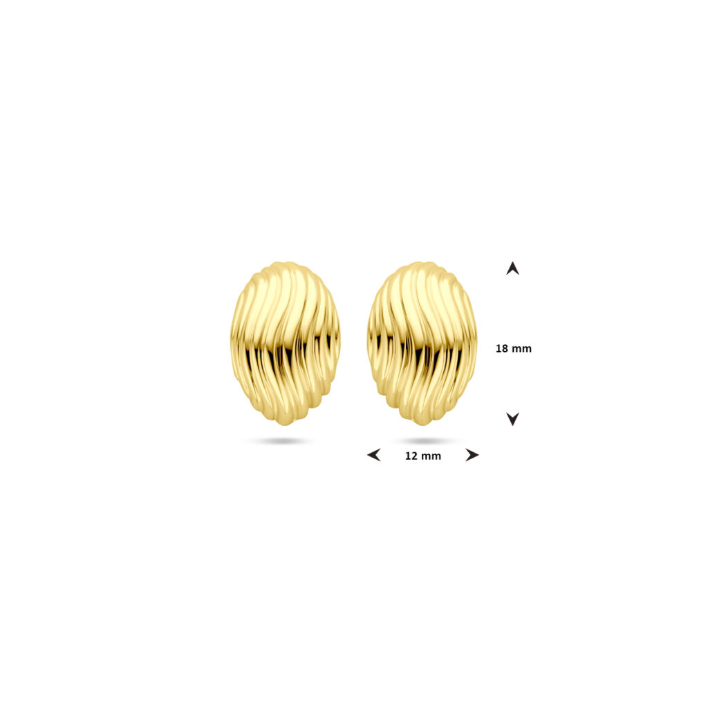 Geelgoud op 925 zilveren oorknoppen uitgevoerd in een ovale vorm. De oorknoppen hebben een afmeting van 18x12mm.