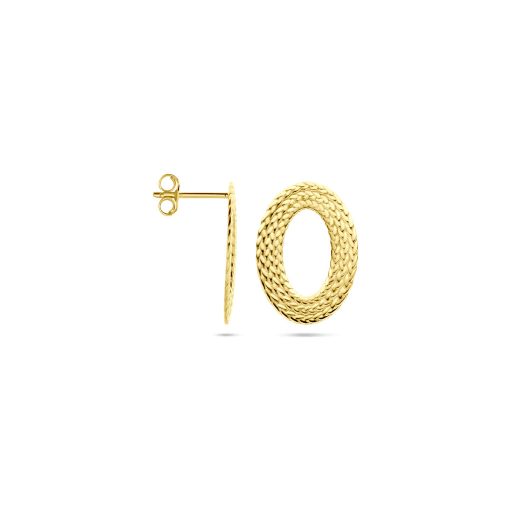 14k Geelgouden oorknoppen uitgevoerd in een ovale vorm. De oorknoppen hebben een afmeting van 20x14mm.