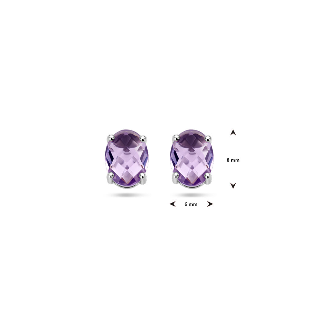 Gerhodineerd 925 zilveren oorknoppen uitgevoerd met amthist. De steen heeft een afmeting van 8x6mm.
