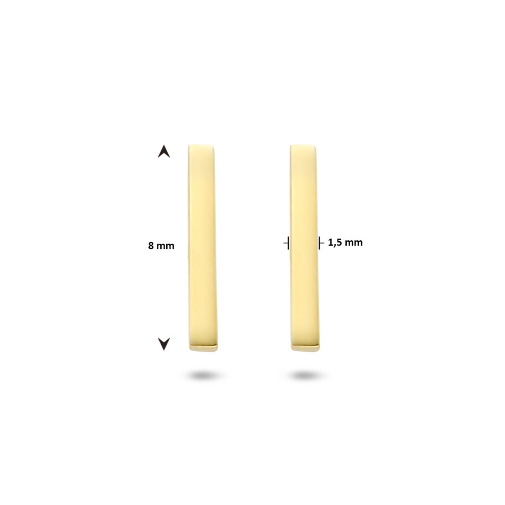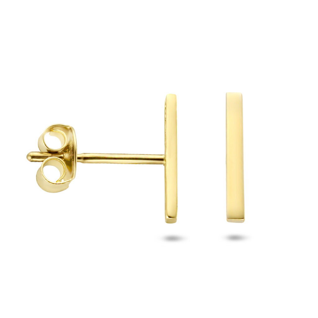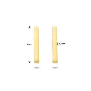 Deze Geelgouden Balkje Oorknoppen met Handige Sluiting zijn volledig gemaakt van 14 karaats geelgoud, de allerbeste kwaliteit geelgoud, met een gepolijst oppervlak. Deze oorknoppen hebben een breedte van 1,5mm met een hoogte van 8,5mm. Dit sieraad bestaat uit een slanke langwerpige balk, met aan de achterkant een slanke steker en handige sluiting, waarmee u deze oorknoppen gemakkelijk in- en uitdoet. Deze oorsieraden zijn geschikt voor dames en zijn bijzonder leuk als cadeau. Dit sieraad zal tevens niet misstaan op bijvoorbeeld een luxe gala of een black-tie event. Deze oorsieraden behoren tot onze huiscollectie, waardoor u verzekerd bent van de allerbeste kwaliteit tegen de scherpste prijs!