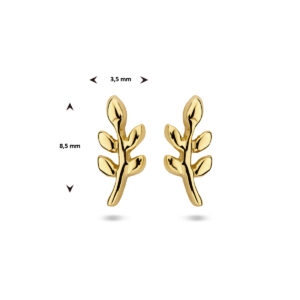 Geelgoud op 925 zilveren oorknoppen in de vorm van een blad. De oorknoppen hebben een afmeting van 8.5×3.5mm.