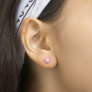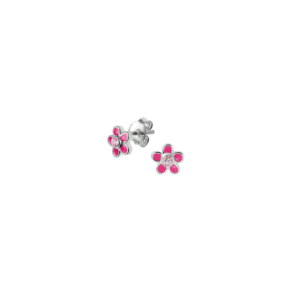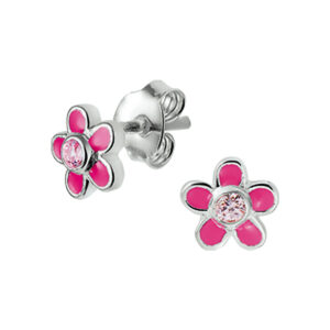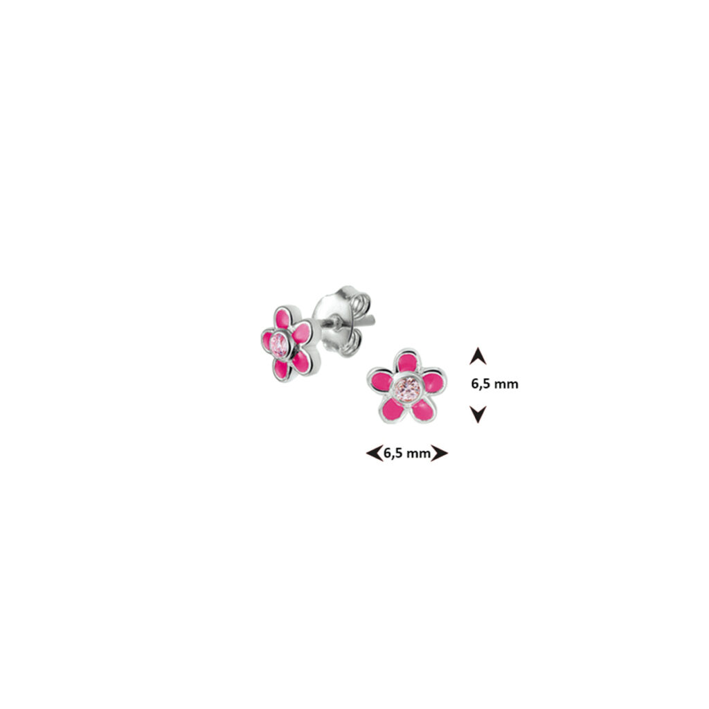 Deze Roze Bloem Oorknoppen van Zilver met Roze Zirkonia zijn volledig gemaakt van 925 sterling zilver, de allerbeste kwaliteit zilver, en voorzien van een gepolijst oppervlak dat mooi glanst met gekleurde emaille en een gekleurde zirkonia. Deze oorknoppen bestaan uit een handige sluiting aan de achterkant met aan de voorkant een oorknop in de vorm van een bloem met vijf bloemblaadjes die zijn gekleurd met roze emaille met in het midden een roze zirkonia die mooi glinstert. Daarnaast zijn deze oorknoppen voorzien van een gepolijst oppervlak, waardoor ze mooi glanzen. Deze Roze Bloem Oorknoppen van Zilver met Roze Zirkonia hebben een breedte van 6,5mm met een hoogte van 6,5mm en zijn speciaal voor kinderen.