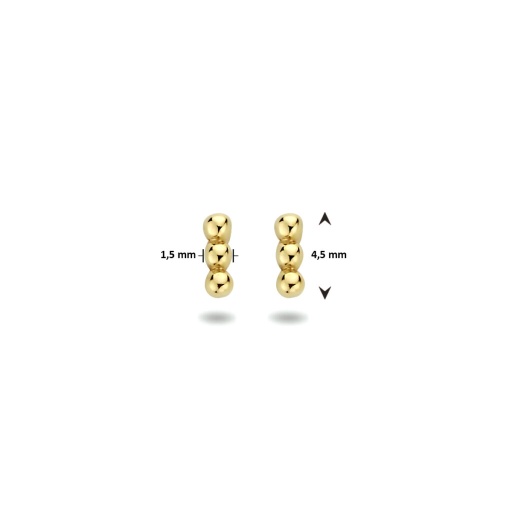 Deze mooie oorknoppen zijn gemaakt van 14 karaat goud, dat bestaat uit 58,5% goud. Het sieraad is gepolijst, wat zorgt voor een mooie glanzende afwerking. De oorknoppen zijn uitgevoerd met bolletjes, wat zorgt voor een unieke uitstraling. De oorknoppen zijn 4,5 mm lang en 1,5 mm breed. Deze oorknoppen zijn een echte must-have! Ze zijn leuk om cadeau te geven, maar ook leuk om zelf te dragen.