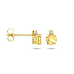 oorknoppen citrien en diamant (2x 0.015ct) h si