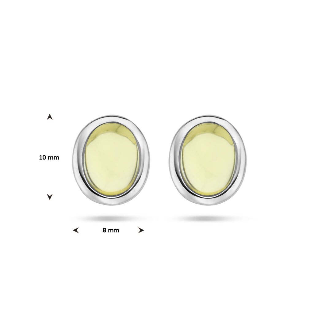 Gerhodineerd 925 zilveren oorknoppen uitgevoerd met citroenkwarts. De oorknoppen hebben een afmeting van 10x8mm.