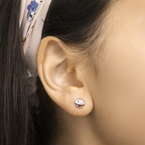 Deze super leuke en vrolijk gekleurde cupcake oorknoppen zijn uitgevoerd in gerhodineerd zilver en emaille in verschillende kleuren. De oorknoppen hebben een afmeting van 9×6.5mm en hebben een poli afwerking. De oorknoppen zijn te combineren met bijpassende sieraden uit onze collectie om zo een kleurrijke set te maken!.