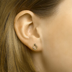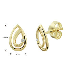 14k Geelgouden oorknoppen in druppelvorm uitgevoerd met een schitterende diamant. De oorknoppen hebben een afmeting van 10×6.5mm.
