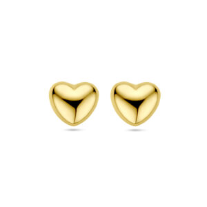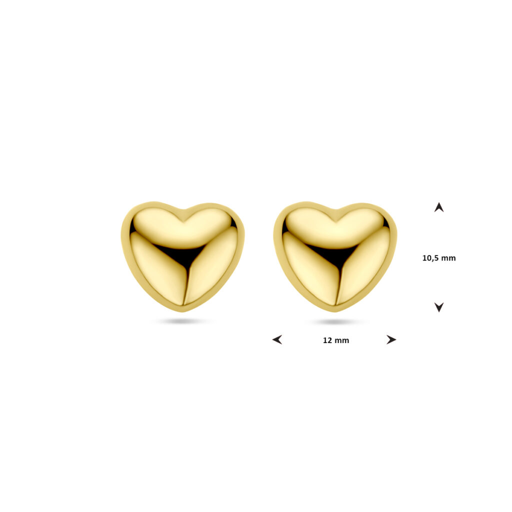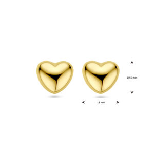Geelgoud op 925 zilveren oorknoppen uitgevoerd in de vorm van een hart. De oorknoppen hebben een afmeting van 10.5x12mm.