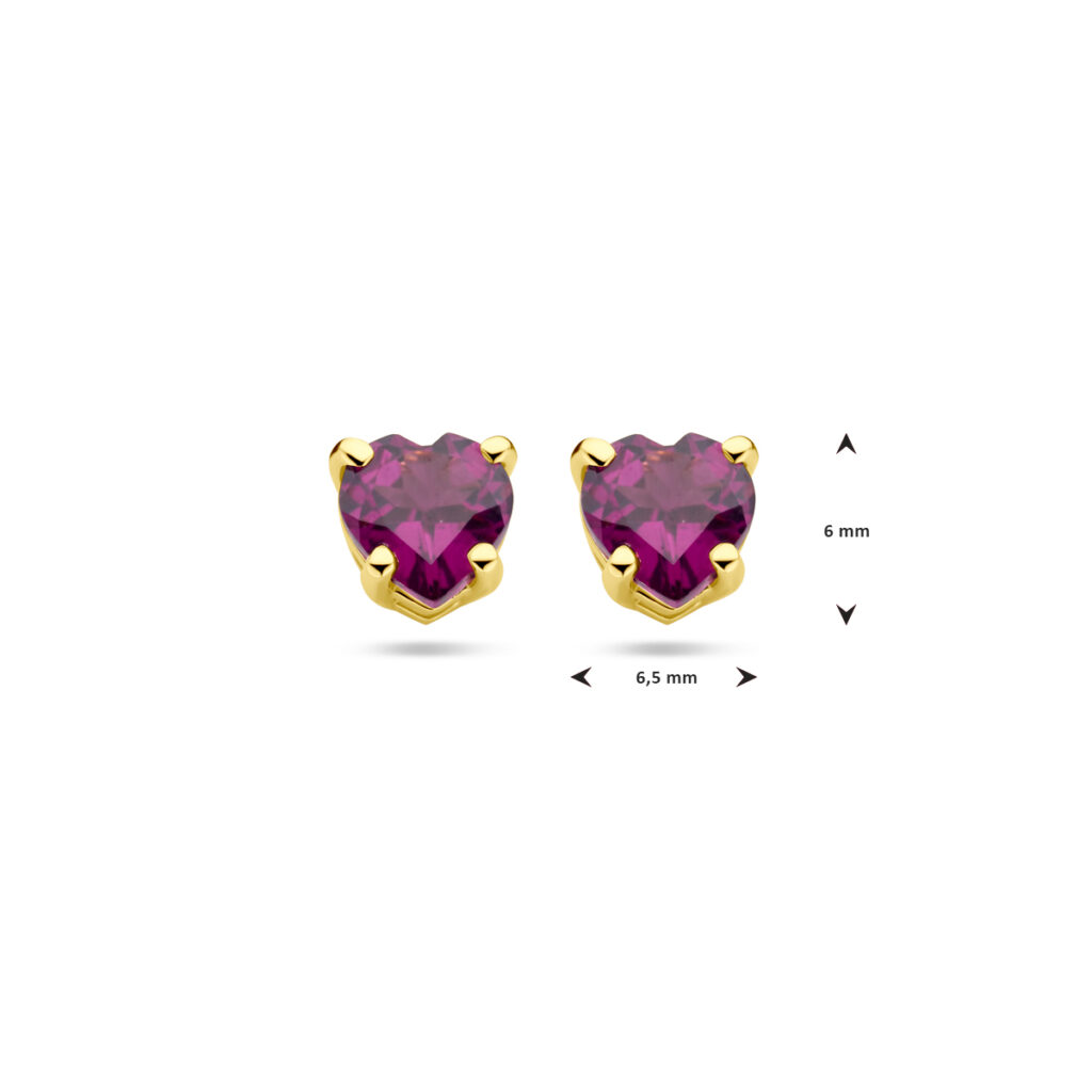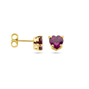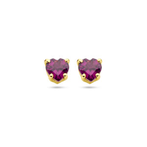 14k Geelgouden oorknoppen uitgevoerd met rhodoliet hart. De oorknoppen hebben een afmeting van 6×6.5mm.