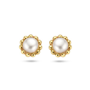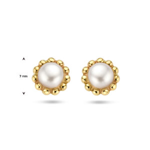 14k Geelgouden oorknoppen uitgevoerd een met zoetwaterparel. De oorknoppen hebben een diameter van 7mm.