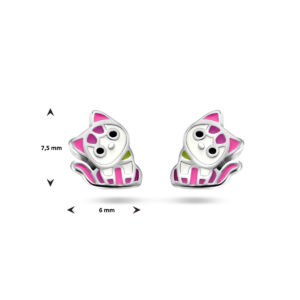 Gerhodineerd 925 zilveren poes oorknoppen. De oorknoppen hebben een afmeting van 7,5x6mm.