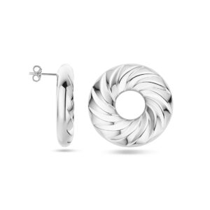 Oorknoppen Rondje Gedraaid 32 Mm Zilver Gerhodineerd