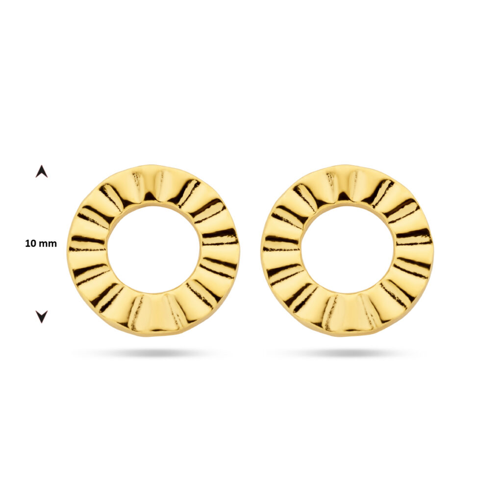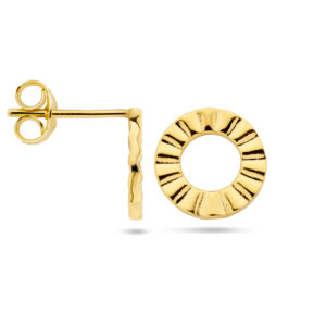 Geelgoud op 925 zilveren oorknoppen in de vorm van een open rondje. Het rondje heeft een diameter van 10mm.