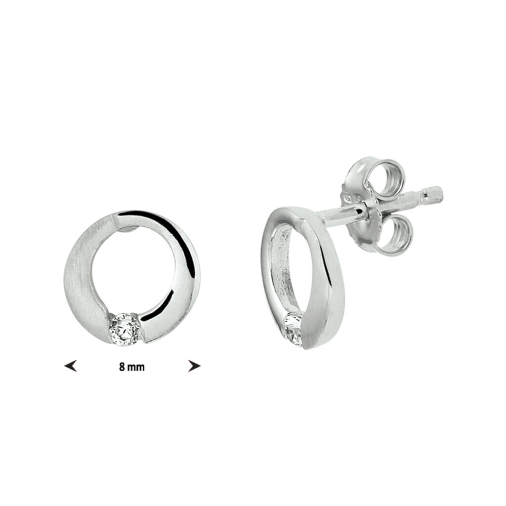 Gerhodineerd zilveren oorknoppen uitgevoerd met een heldere zirkonia. De oorknoppen hebben een poli/matte afwerking en een diameter van 8mm.