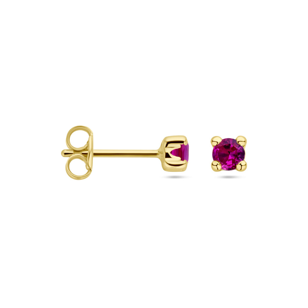 14k Geelgouden oorknoppen uitgevoerd met synthetisch robijn.