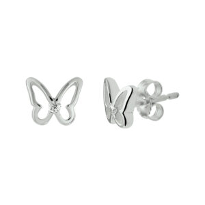 Gerhodineerd zilveren oorknoppen in de vorm van een vlinder uitgevoerd met heldere zirkonia. De oorknoppen hebben een afmeting van 6×7.5mm.