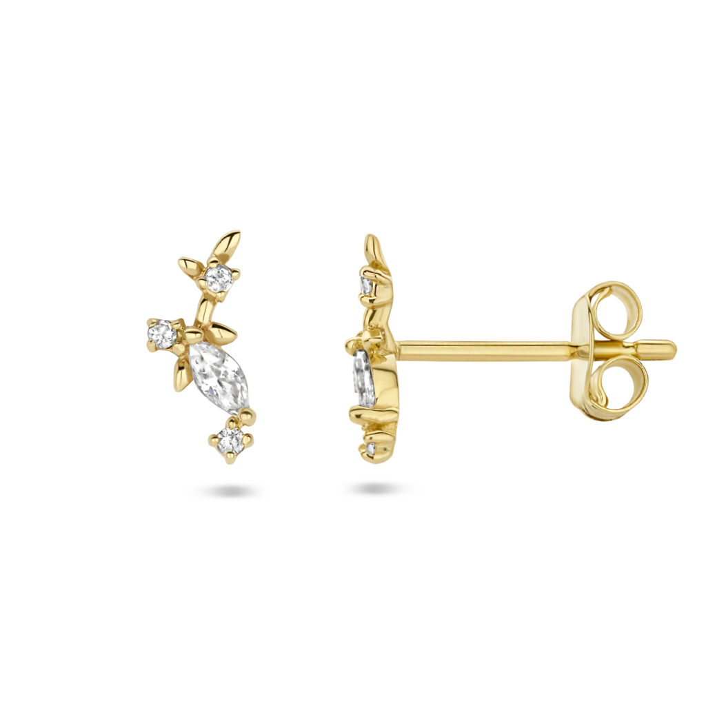 14k Geelgouden oorknoppen uitgevoerd met schitterende zirkonia. De oorknoppen hebben een totale hoogte van 7.5mm.
