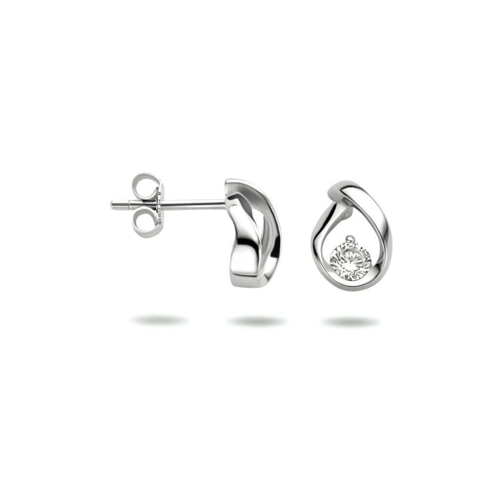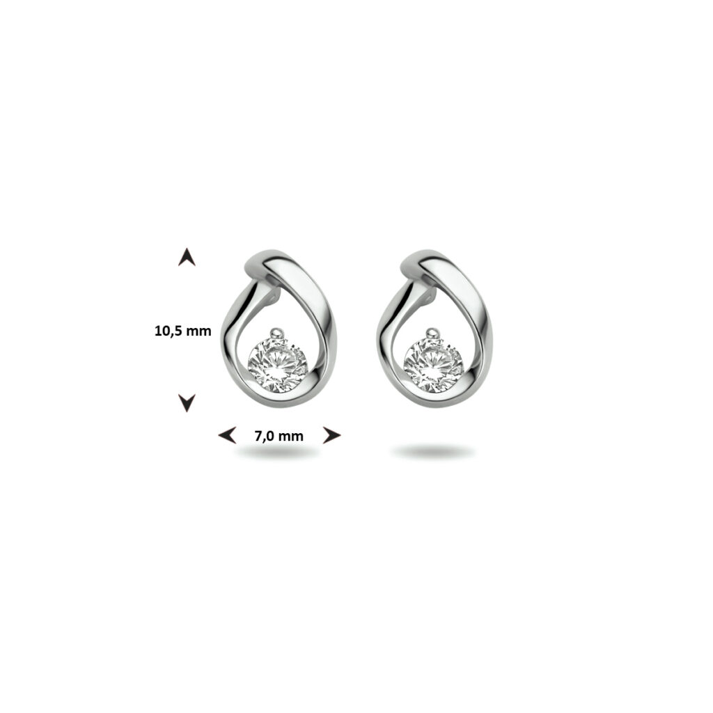 Deze schitterende oorknoppen zijn gemaakt van 925 sterling zilver, de allerbeste kwaliteit zilver. Het sieraad is gepolijst en voorzien van een laagje rhodium, wat ervoor zorgt dat de glans extra lang behouden blijft. De oorknoppen bestaan uit een opengewerkte vorm met aan de bovenkant de steker, die door het oor gaat. De binnenkant van de oorknoppen zijn voorzien van een schitterende zirkonia. De oorknoppen hebben een afmeting van 10,5 mm x 7 mm.