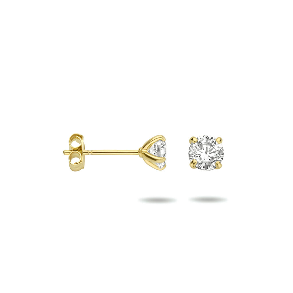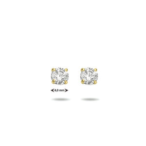 14k Geelgouden oorknoppen uitgevoerd met een heldere zirkonia. De oorknoppen hebben een diameter van 4mm.