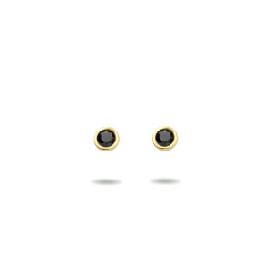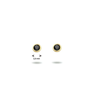 14k Geelgouden oorknoppen uitgevoerd met een schitterende zwart zirkonia. De oorknoppen hebben een diameter van 2mm.