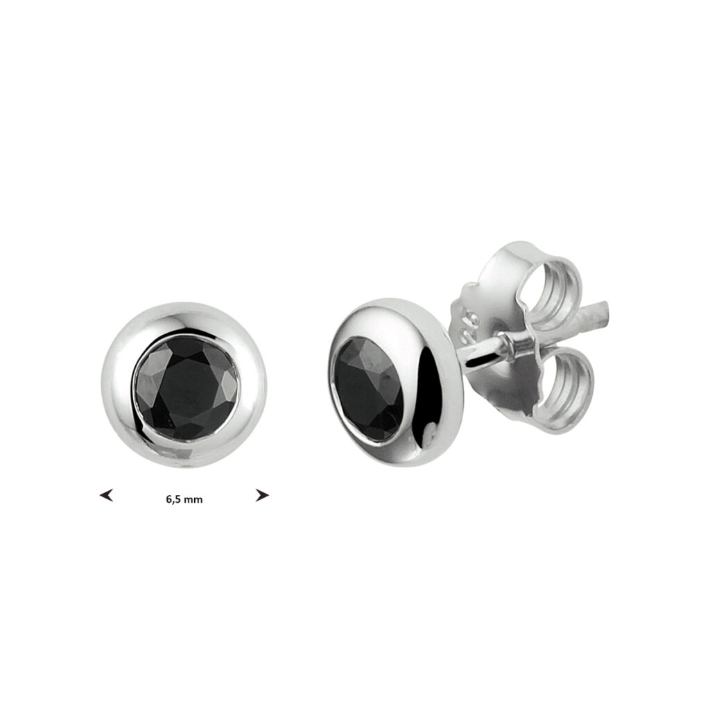 Deze oorknoppen met zwarte zirkonia’s zijn volledig gemaakt van 925 sterling zilver, de allerbeste kwaliteit zilver, met een fijntjes gepolijst oppervlak dat mooi glanst en een laagje rhodium waardoor die glans extra lang behouden blijft. De oorknoppen bestaan uit een rond plaatje aan de voorkant, met in het midden een zwarte zirkonia die mooi glinstert, met aan de achterkant een slanke steker die u gemakkelijk door uw oor steekt en een handige sluiting. Deze oorknoppen zijn speciaal voor dames en hebben een diameter van 6,5mm.