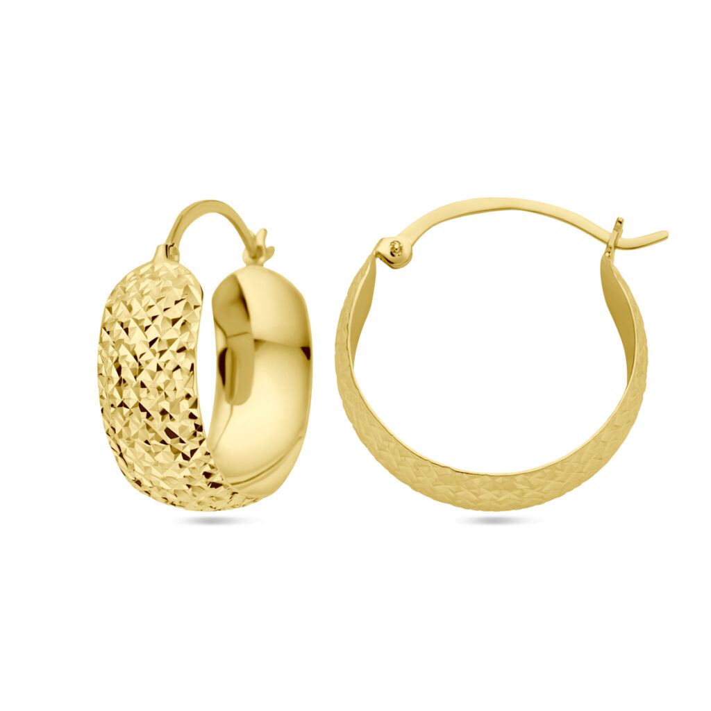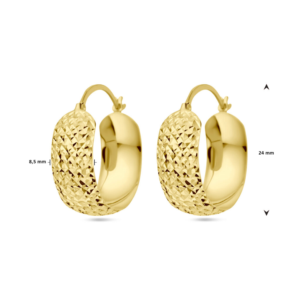 14k Geelgouden oorringen met een breedte van 8.5mm.